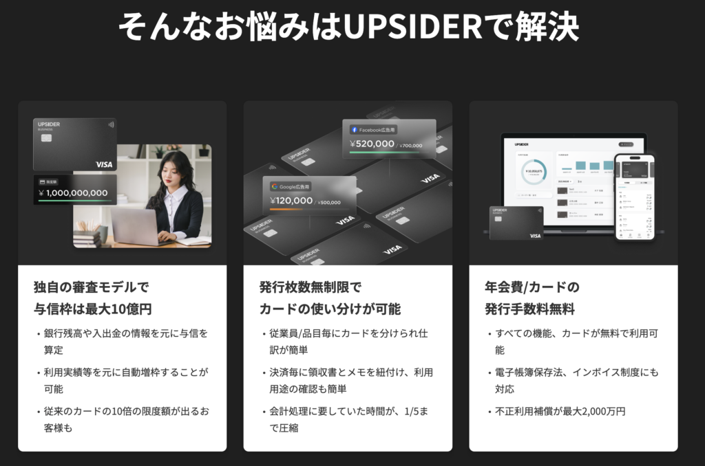 これまでの解説を総括すると、UPSIDER法人カードは単なる決済手段ではなく、企業の成長過程で必ず直面する「業務の非効率」と「資金繰りの壁」という2つの課題に対する、極めて強力な解決策です。